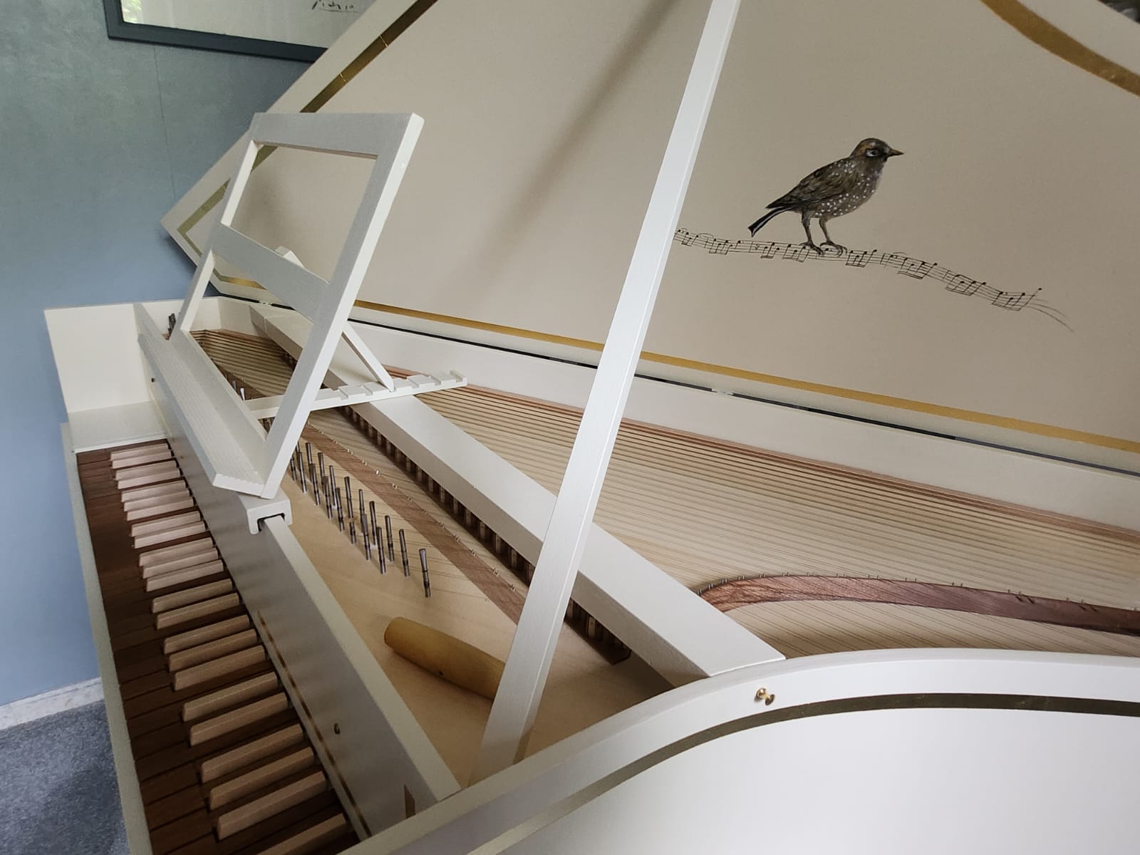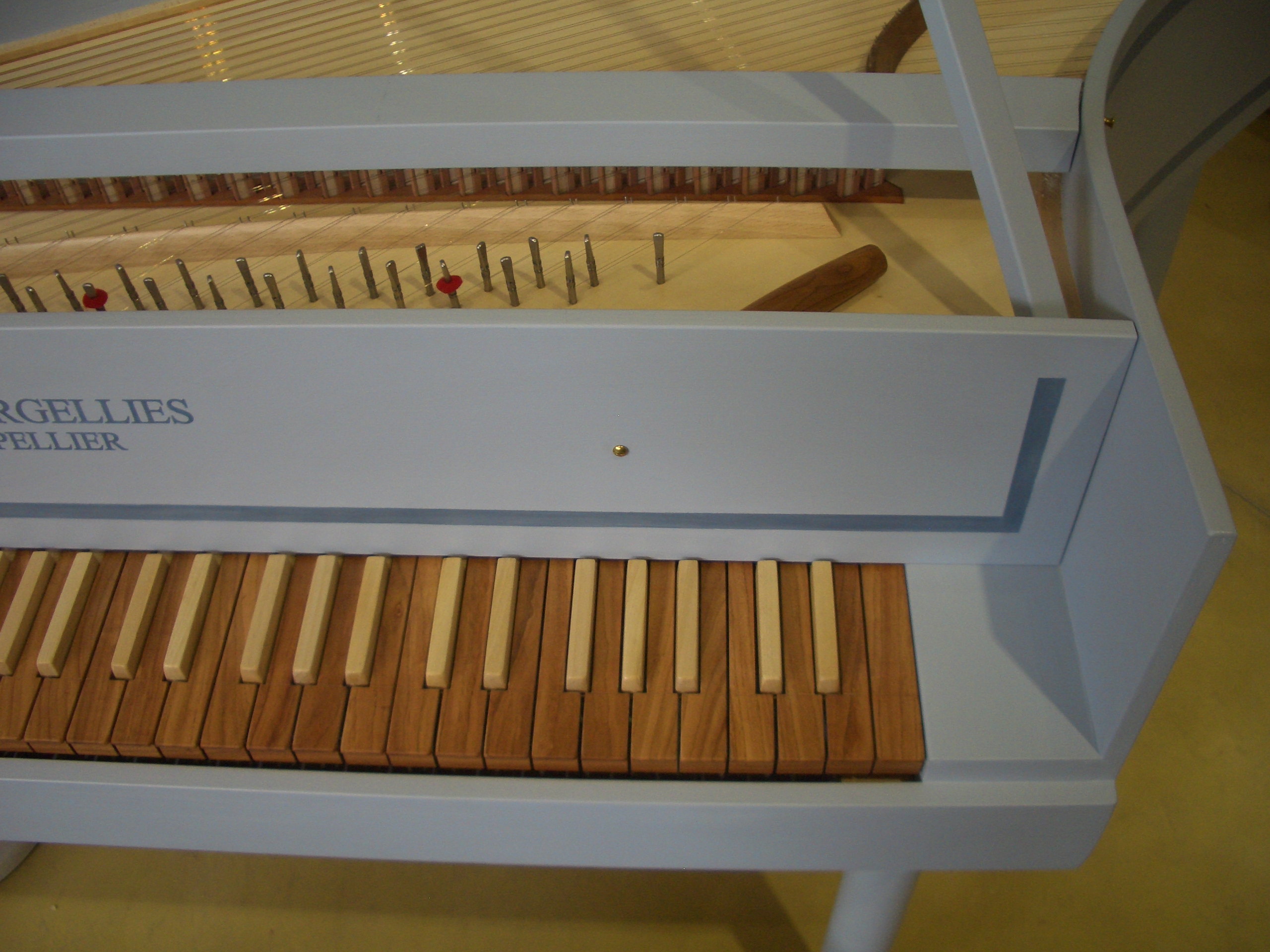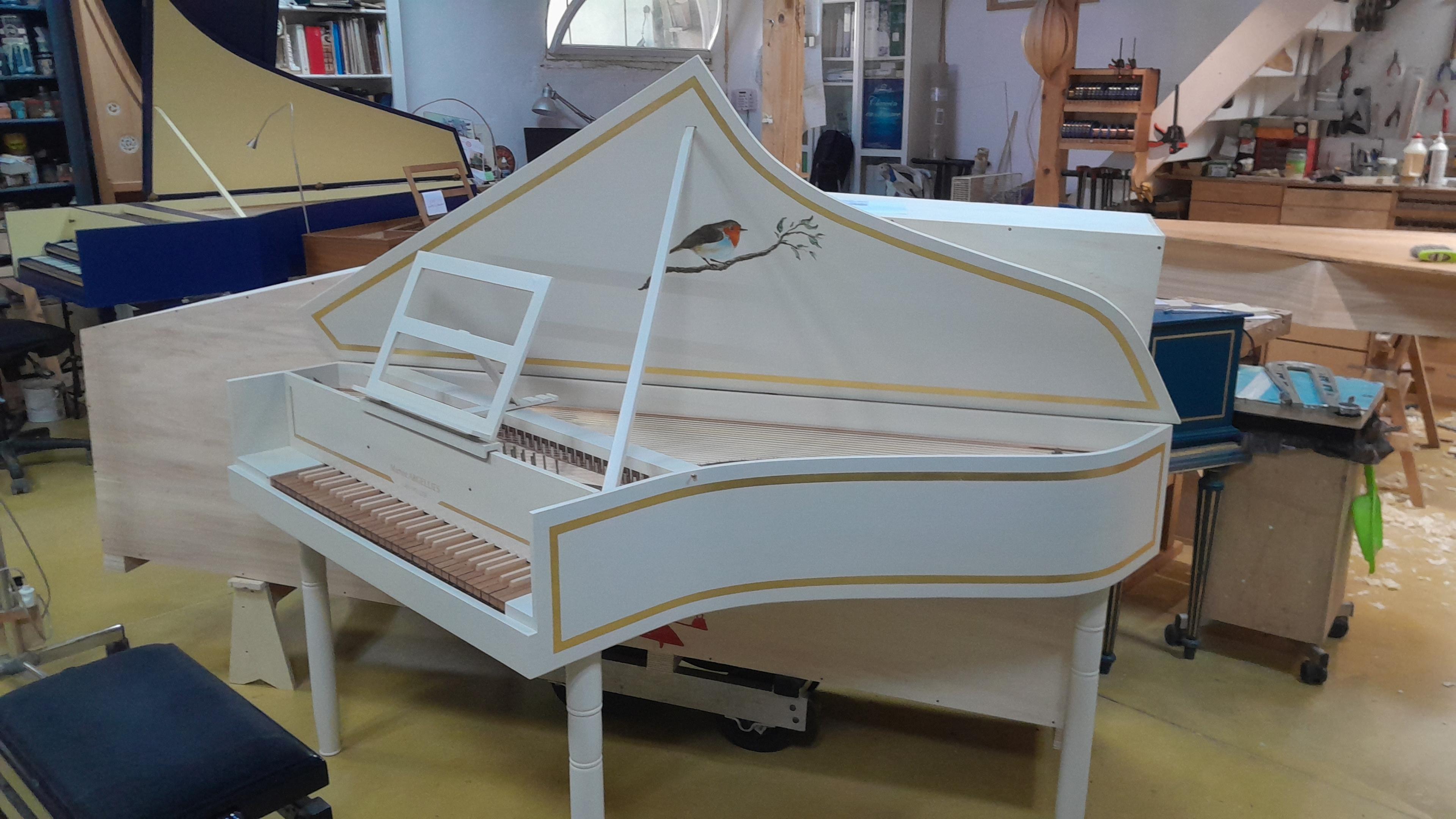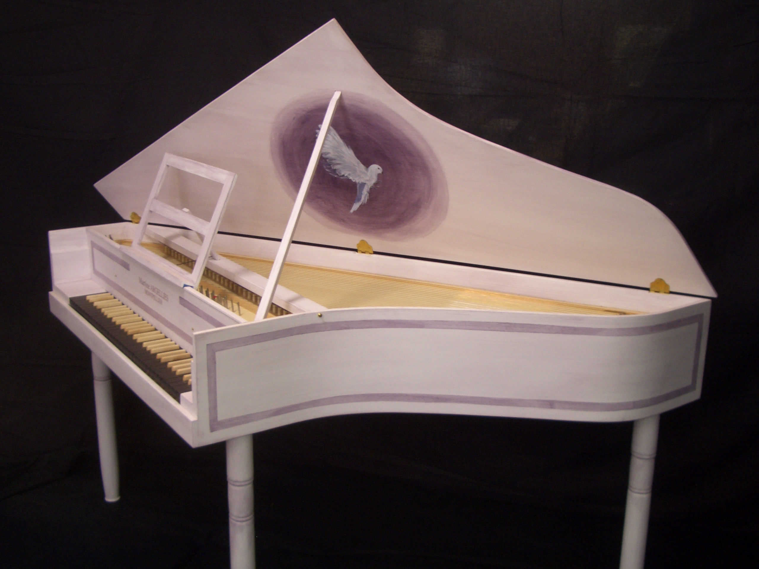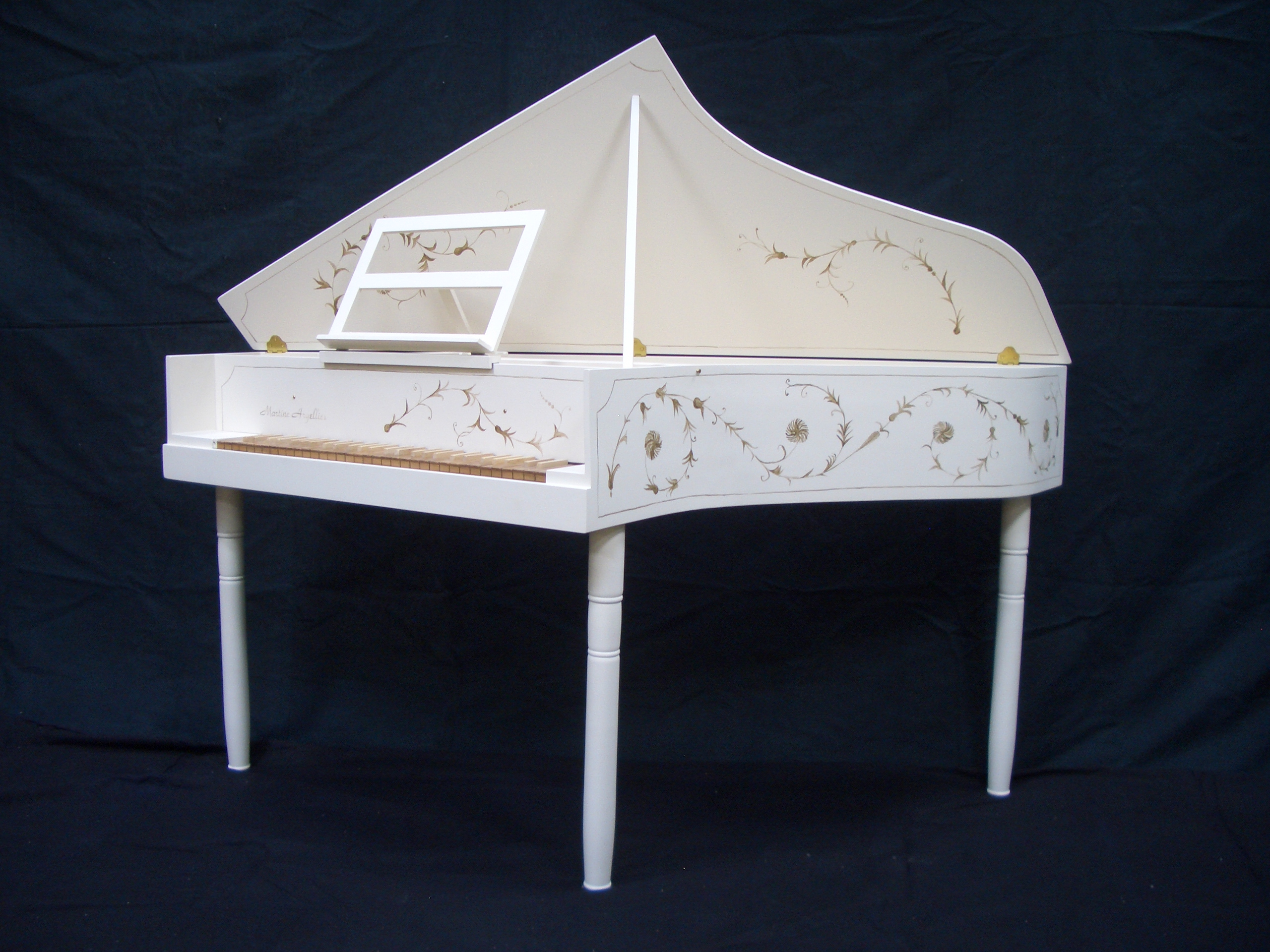 C’est une épinette française avec, cependant, une sonorité pas trop typée afin de ne pas limiter le répertoire. Elle garde le souvenir des instruments flamands que les français du XVIII siècle recopiaient. Le répertoire nordique et polyphonique y sonne bien.