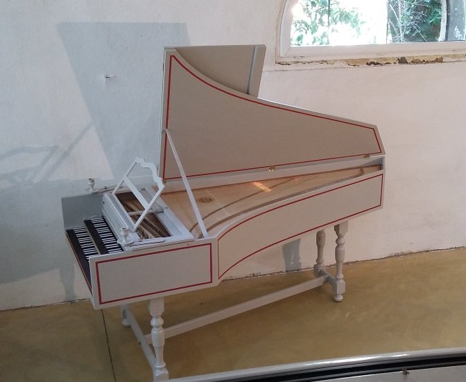 This harpsichord is made after the Goujon or the Rückers-Taskin 2 keyboards harpsichords. The mechanic and soundboard are exactly the same, also the sound, but all the elements not in use for music were simplified.